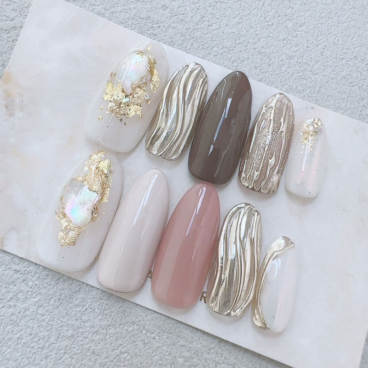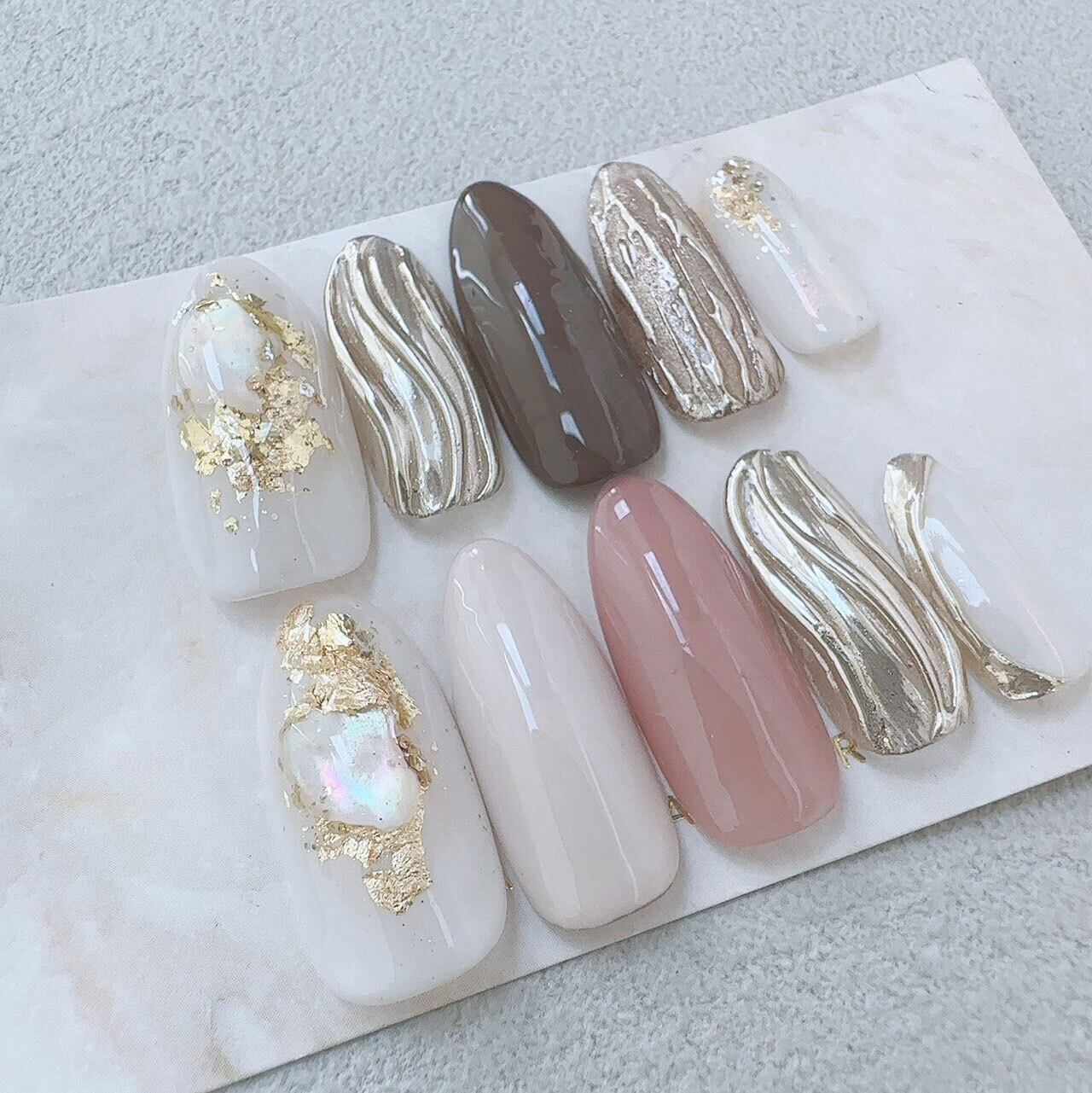 ●ネイルチップは1つ1つ手作業で作成しているためデザインやニュアンスが多少変わる事があります。